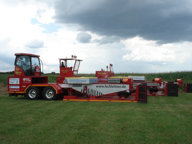 nutze man noch gleich die wenig freie Zeit um eine eigene Bahnwalze zu bauen und diese auch in Zukunft mit zu vermieten. Klein, kompakt und wendig war die Devise und trotzdem ein gutes Gewicht zum verdichten, am besten noch anpassbar, also mit Balastgewichten. Diese wurde dann pünktlich zur eigenen Veranstaltung in Betrieb genommen, getestet und für gut befunden. Blastierbar von 500 kg bis 2,5 Tonnen kann man sich so fast jeder Bahnbeschaffenheit anpassen. Der Terminkalender war wieder prall gefüllt, wieder über 25 Veranstaltungen von Ende April bis Anfang September. Da hieß es wieder Ärmel hoch krämpeln. Unsere eigene Veranstaltung lief nicht ganz so gut. Mussten wir doch am Sonntagmittag ein dickes Regenschauer über uns ergehen lassen. Nach 1,5 Stunden Dauerregen dachte man schon über einen Rain Out nach. Aber als wir mit diesen Gedanken spielten muß Gott ein einsehen mit uns gehabt haben! Der Himmel klarte auf, die Wolken schoben beiseite und wir konnten weiter fahren. Es folgte noch ein weiteres kleines Schauer und dann schien sogar die Sonne. Aber man merkte förmlich, es liegt da was in der Luft. Als der letzte Tractor gefahren war öffnete der Himmel dann seine Wolken. Es begann sinnflutartig zu regnen, aber wir hatten es geschafft, die Veranstaltung wurde zuende gefahren und alle waren Glücklich.