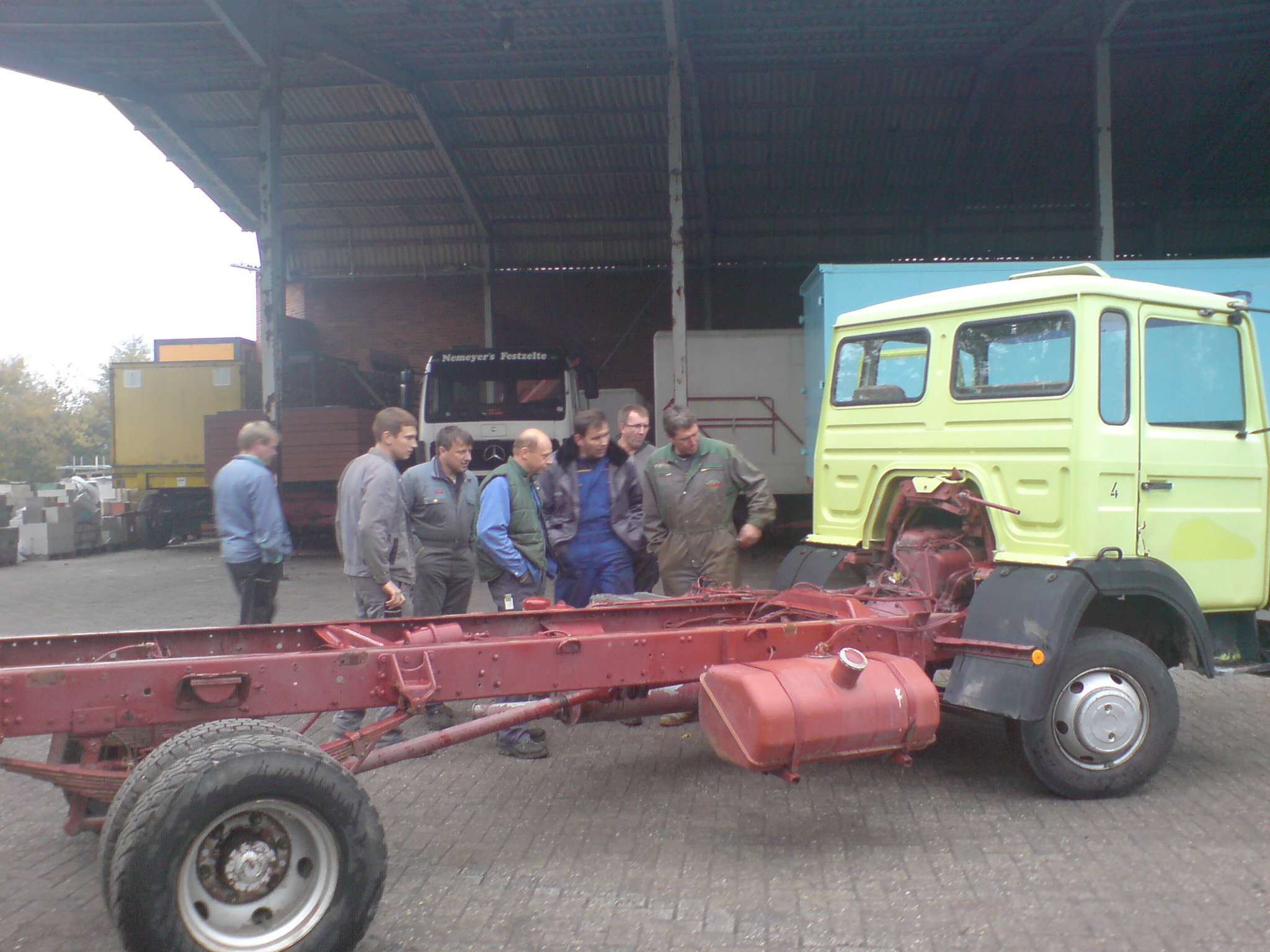 konnte also beginnen, in wirklich letzter Minute hatten wir alles fertig bekommen. Die letzten Schrauben wurden beim Aufladen für Füchtorf festgezogen, wie so oft. Alles was wir im Winter so gebaut, umgebaut und überholt hatten machten sich auf zum Sasionstart. Und es funktionierte sogar einwandfrei und auch so wie wir es uns vorgestellt hatten. Durch einen Zufall war man Anfangs des Jahres mit einem Tiefladerhersteller in Kontakt gekommen. Der ältere Tieflader wurde verkauft und man bekam einen Nagelneuen Tieflader, gleich entsprechend unseren Bedürfnissen angepasst. Während der laufenden Saison wurde ein MAN Tandemachsaggregat mit passender Übersetzung in dem Hafen von Rotterdamm angespült. Wie der Zufall das so will konnte man das für einen Bremswagenneubau verwenden. Also machte man sich mit einen Unimog! auf nach Rotterdamm. Witzig war noch die Bemerkung vor der Abfahrt das der Unimog in BW Ausführung kein Radio hatte. Kurz danach stellte derjenige aber auch fest das ein Radio nicht nötig gewesen wäre, man hätte bei dem Krach eh nichts von verstanden. War doch die gute Geländebereifung montiert. Die Fahrt ist auch bis heute in guter Erinnerung geblieben.