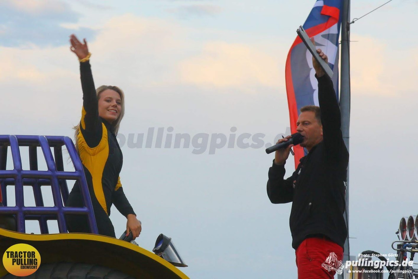 Auf der eigenen Veranstaltung wurde der Red Shadow TE dann offiziel und tradtitionsgemäß durch die Bürgermeisterin getauft. Danach stellte er auf heimischen Boden wieder sein Können unter Beweiss. Und dann folgte auch noch ein Jubiläum der anderen Art an diesem Tag. Unser langjähriger Moderator Ulf Schnackenberg hatte sein 20. Moderationsjahr bei uns und auch beim Tractor Pulling. Dafür gab es dann einen Ehrenpokal, einen Päsentkorb und einen Blumenstrauß für seine Frau Ines. Die große Ehrenrunde auf dem Siegerwagen für Ihn und seine Familie, ganz ohne Mikro und einfach mal selber den Applaus genossen. Aber wieder konnte man etwas beobachten. Wie auch bereits die beiden Jahre davor, weniger Zuschauer in Edewecht. Es war brüllend heiß, die Wochen davor nur Regen, mitten in den Sommerferien, sollte das daran liegen?