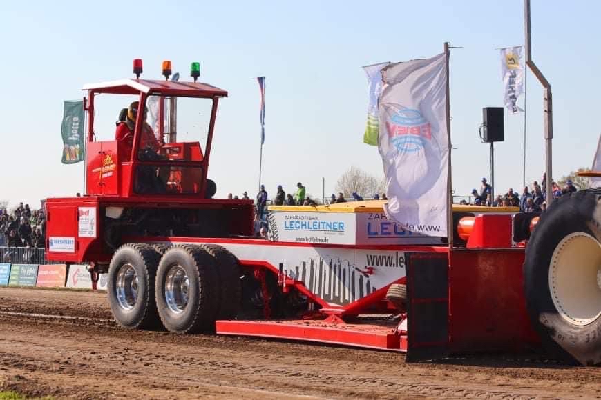 kamen dann erstmal die üblichen Wartungsarbeiten am TE dran. Da man nicht wusste wie es 2022 weiter geht entschied man sich erstmal einen Bremswagen zu 100 Prozent fertig zu machen. Irgendwie musste es aber auch weitergehen. Die finanziellen Rücklagen des Vereins waren so gut wie aufgebraucht. Aber auch in schweren Zeiten hielt man zusammen und somit unterstützen alle Mitglieder den Verein finanziell in dieser verrückten Zeit. Im November 2021 bekam man dann noch Besuch vom niederländischen Tractor Pulling Magazin „Pulling Power“. Das Vereinsmagazin der NTTO ( Niederländische Trecker Treck Organisation) machte einen Teambericht. War man immer wieder mal in den Niederlanden zu Gast dachte man sich man kann auch mal mehr vom deutschen Bremswagenteam erfahren. Stolz lass man den Artikel. Als zweites Deutsche Team schaffte man es in das Magazin. Im Februar 2022 war es dann endlich soweit. Die ersten Testläufe mit dem neuen Red Shadow SE wurden gemacht. So lange brauchte man noch nie um einen Bremswagen mal eben zu überholen. Aber es war ja auch höhere Gewalt mit im Spiel. Das Ergebniss konnte sich echt sehen lassen. Alles funktionierte wie gewollt und auf Anhieb. Es konnte also losgehen!